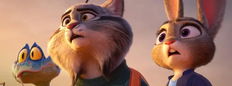 作为2016年上映的《疯狂动物城》续作,《疯狂动物城2》讲述了身为爬行动物的蛇盖瑞乱入动物城,兔子警官朱迪和搭档狐狸尼克联手解决危机,揭开动物城神秘往事的故事。伴随着新物种加入,熟悉的动物城扩充出新地图,观众跟随朱迪和尼克一起进入神秘的边缘地带湿地市场调查冒险,和搞笑又带点恶心的爬行、两栖动物打交道,带来动画电影独有的趣味。曾在第一部中惊鸿一瞥的雪山、沙漠场景也进一步展开,在华丽气派的猞猁家族豪宅晚宴中上演的刺激动作戏,让人梦回众多007名场面。在辽阔苍凉的沙漠里冒险谈心的场景,则给人一种媲美《沙丘》的史诗感。