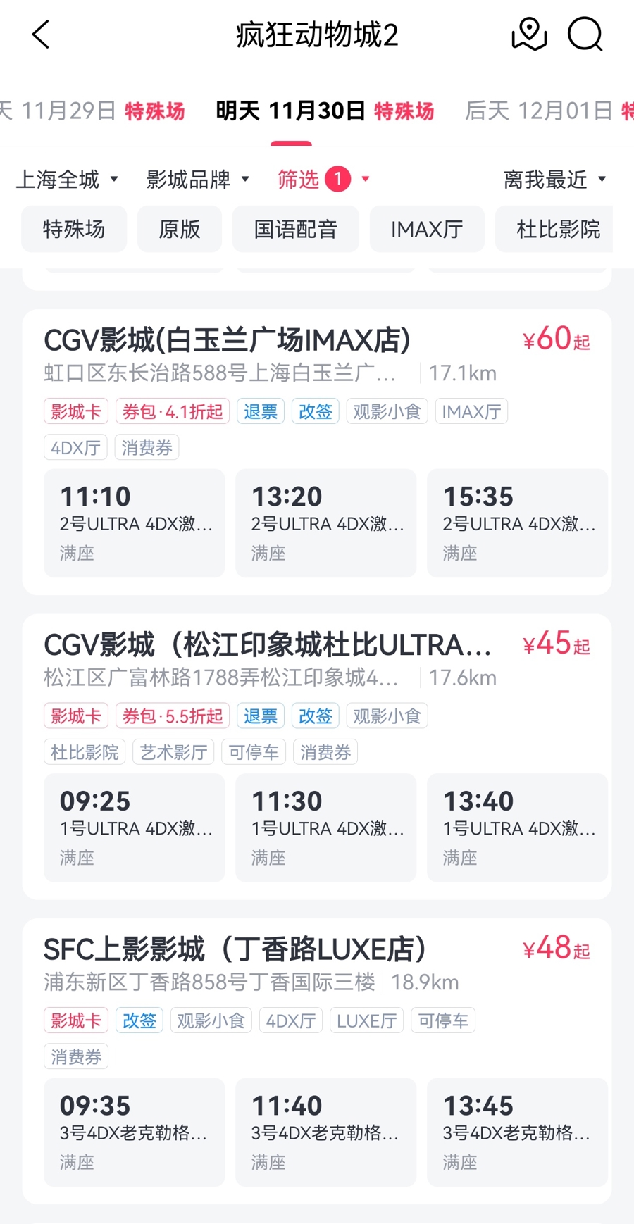 ULTRA 4DX厅的《疯狂动物城2》场场满座。