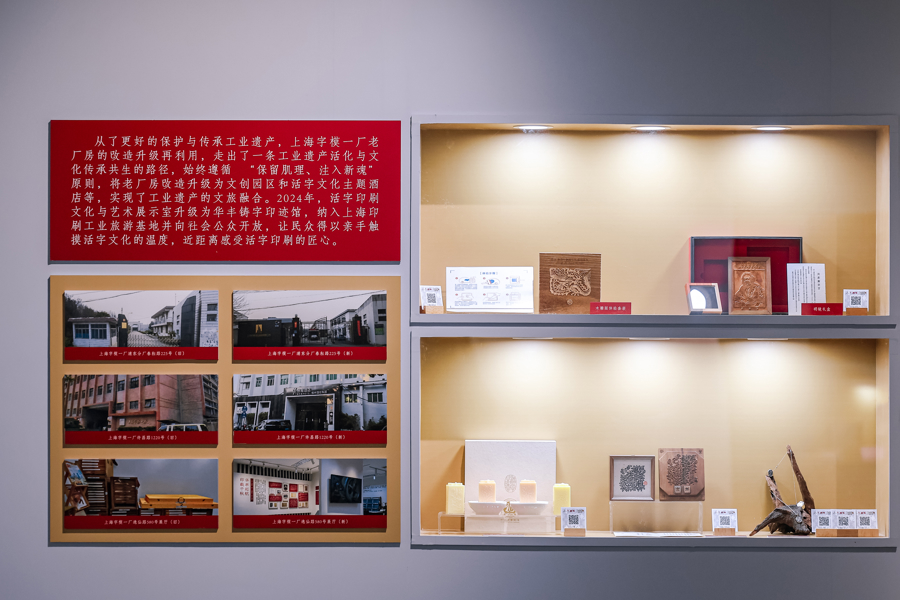 2023年,华丰获评“上海老字号”与首批“上海工业遗产”,2024年跻身“中华老字号”行列,“华丰”商标纳入上海市重点商标保护名录。除了把汉字做成文创产品,华丰还打造了关于“活字”的旅行路线,将老厂房改造升级为文创园区和活字文化主题酒店等,实现工业遗产的文旅融合。2024年,活字印刷文化与艺术展示室升级为华丰铸字印迹馆,纳入上海印刷工业旅游基地向社会公众开放。