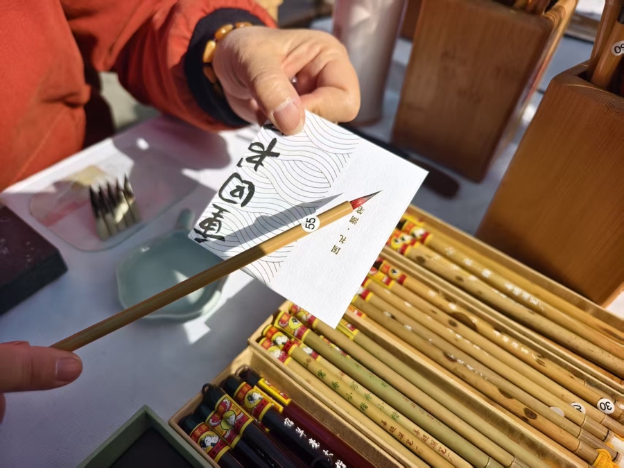 除了风味美食,湖州湖笔、辑里湖丝等湖州名优特产也在供销市集上亮相展销。“湖笔制作技艺是国家级首批非物质文化遗产,湖笔工艺精湛、制作精细,具有尖、齐、圆、健之独特风格。”浙江湖笔传承人王晓华举起一支湖笔向新民晚报记者介绍,近乎半透明状的白色笔锋是湖笔的一大特点,她说:“湖笔是纯手工制作,涵盖笔料、蒲墩、镶嵌、水盆、结头、装套、刻字等130道大小工序,水盆工序是最关键的环节,需要匠人在毫厘之间作出精准判断,配锋配得好,湖笔才能有这般锋芒。”