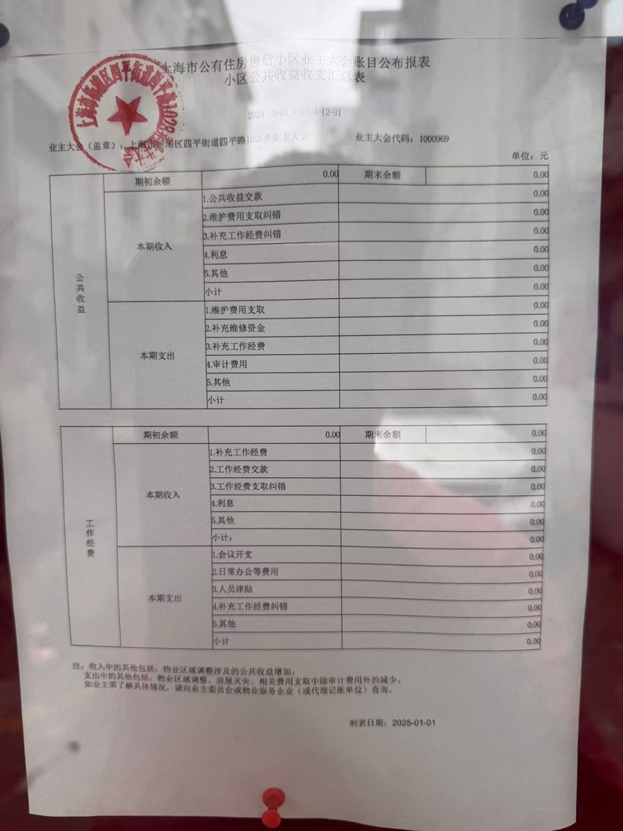 四平路1028弄公交新村居民向“新民帮侬忙”反映,小区近期公布了一张公共收益账目收支汇总表,居民们发现,在公共收益一栏显示为“0”,而当前公共收益账户余额也是“0”元。“明明有停车费等收入,这些公共收益都去哪了?”居民对此十分疑惑。