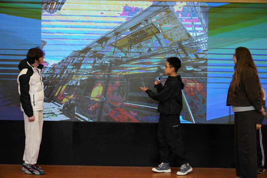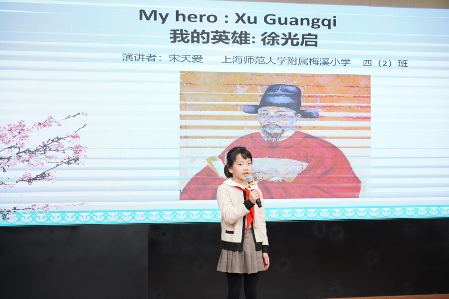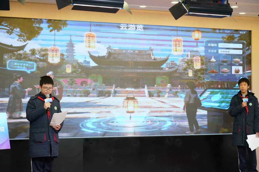 在“研学成果分享”环节,来自第十中学、梅溪小学、大同初级中学和敬业初级中学的学生代表,从不同角度讲述了他们的发现。第十中学的费诗蓝、张腾扬聚焦“文庙寻根”,探寻文化根基;梅溪小学的宋天爱用英文流利讲述徐光启的故事,让本土科学家的智慧“出海”;大同初级中学的王安祺以多语种介绍老城厢,成为传播文脉的“小使者”;敬业初级中学的徐熙妍则另辟蹊径,推荐起承载城市记忆的特色店铺,为老城厢的“烟火气”代言。