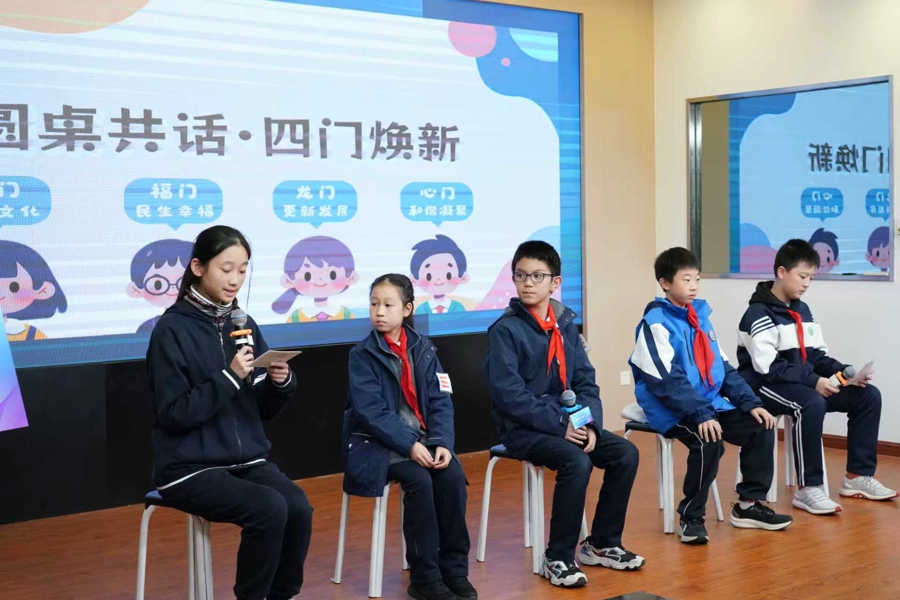 活动的核心环节“圆桌共话:四门焕新”将则现场氛围推向高潮。来自蓬莱路第二小学、上海市敬业中学、上海市第十中学、上海市敬业初级中学的五位代表化身社区“创意总监”,围绕“城门(历史)、福门(民生)、龙门(成长)、心门(共融)”四个维度,为老城厢的更新献计献策。从用AR技术让古城墙“开口讲故事”到将废弃角落变成社区花园,从设计西门主题文创到策划促进代际共融的“小小主理人”,少年们的“金点子”既天马行空又贴近生活,展现了深厚的社区归属感和主人翁精神。在活动中表现优异的同学们获颁“文化传承小使者”“研学优秀参与者”等证书。