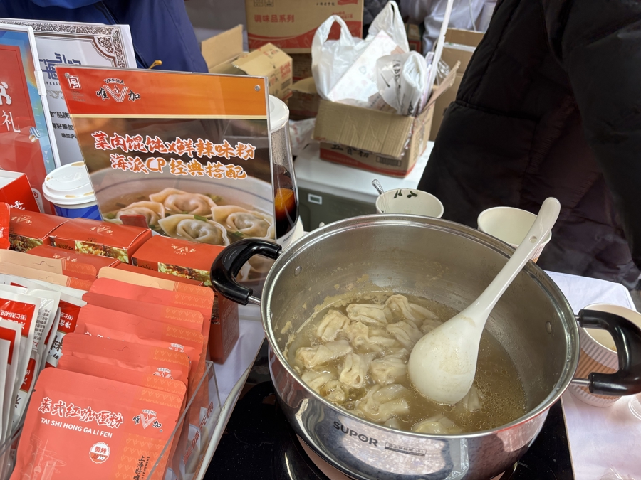 中华老字号唯加在市集上煮起了热气腾腾的小馄饨,路过的市民尝了一碗,直呼“鲜”,原来汤里加入了新上市的上海馄饨汤料。工作人员表示,这款汤料和沪语电影《菜肉馄饨》同步推出,在经典产品鲜辣味粉的基础上进行了提升,加入鸡骨汤料之后,就有了鸡汤的鲜味。“电影里,主角吃馄饨时加入了鲜辣味粉就是我们品牌的,也是最经典的上海味道。现在推出的升级款上海馄饨汤料则可以代替高汤,让市民在家做饭更加省时省力。”