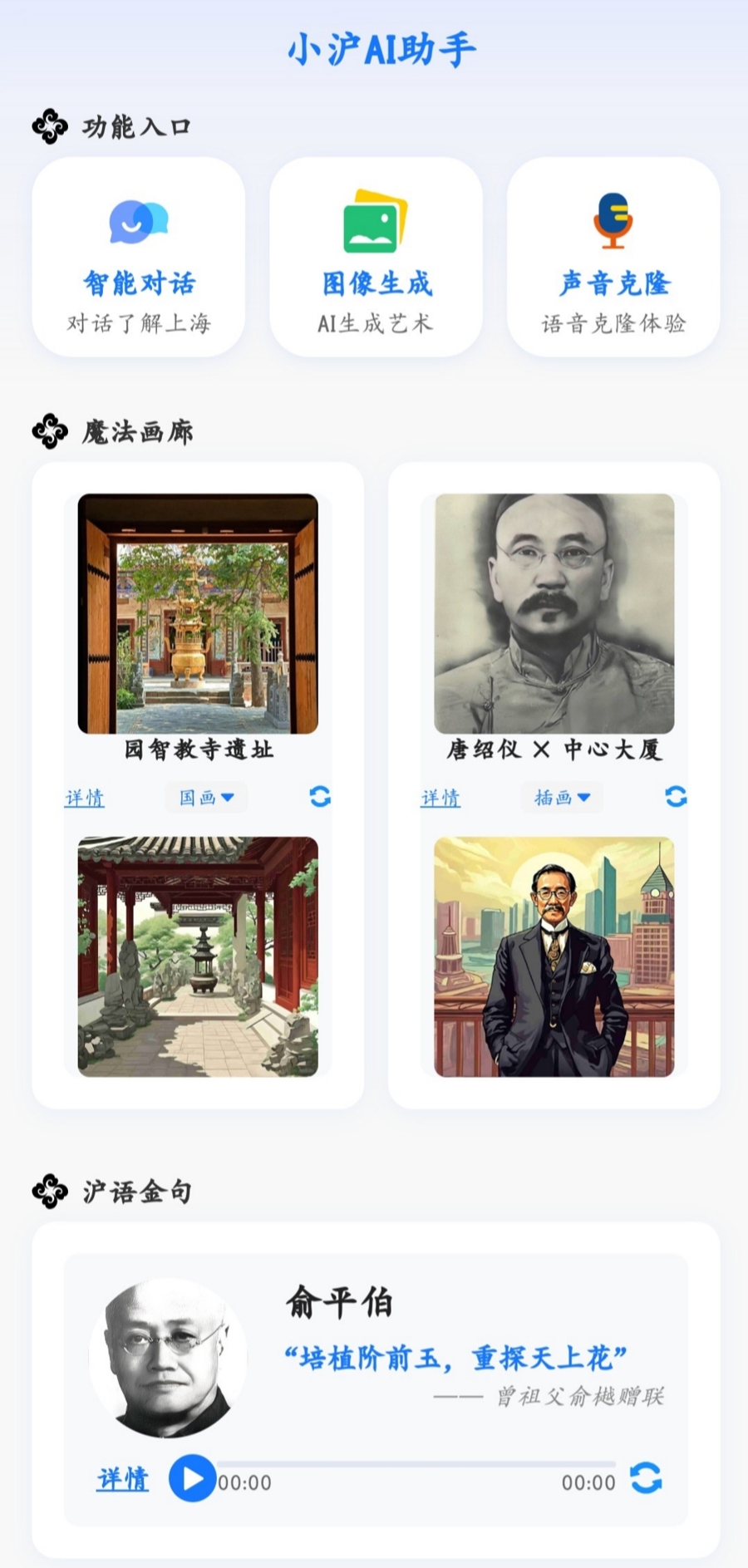 最佳设计奖《沪上印记》是一款聚焦上海人文资源的数字平台,集成地理探索、AI 交互、文生图、语音克隆和知识答题等功能,帮助用户以互动方式了解上海文化。项目系统梳理建筑、人物、非遗、方言等资源,以地图与时间轴多维呈现城市记忆;同时结合游戏化答题与多模态AI技术,提升用户的参与感与文化体验的丰富性。