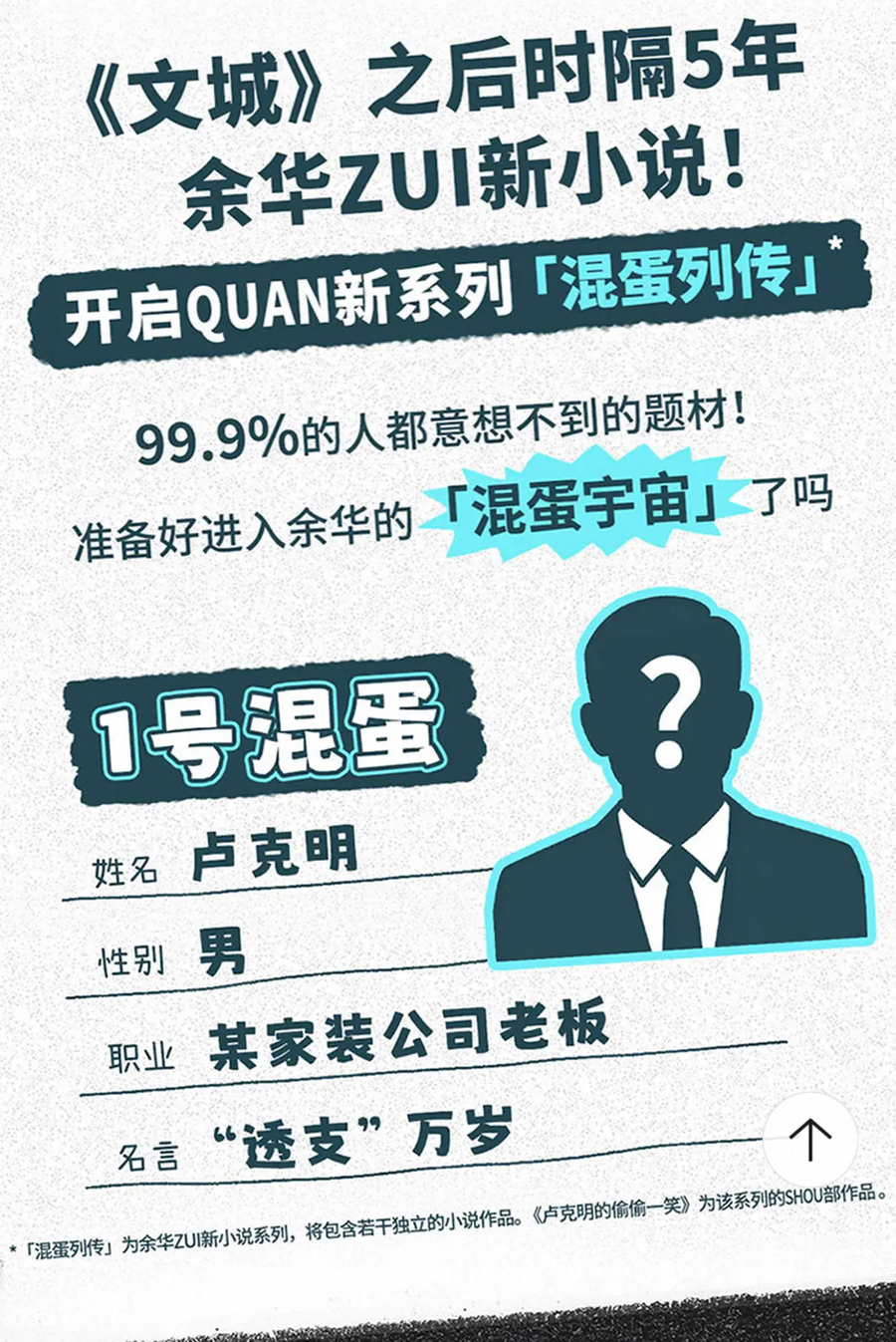 据悉,此小说是余华计划写的《混蛋列传》第一部,后续会写更多“混蛋”的故事。
