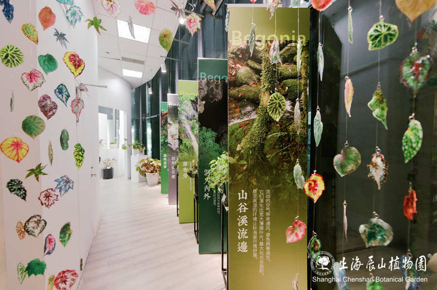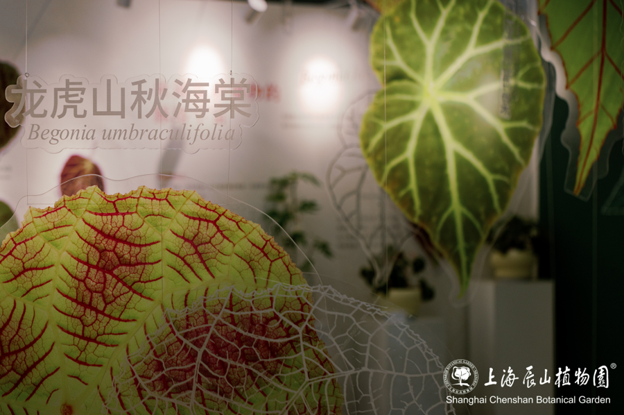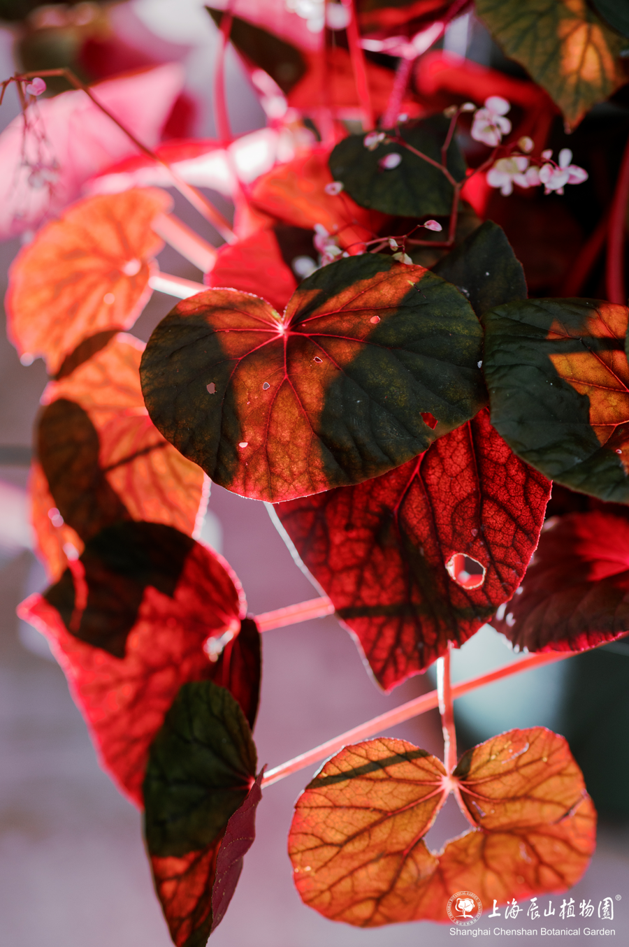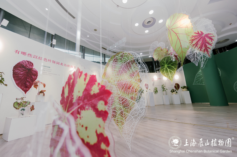 本次展览展示了来自中国、亚洲、美洲及非洲的百余种特色秋海棠。其中,红纹秋海棠娇艳欲滴,黑峰秋海棠神秘深邃,玻璃丝棉巴西变色秋海棠随光影流转变幻色彩,乌头叶秋海棠以奇特叶形抓人眼球,各类品种联袂演绎叶片的“结构之美”与“生命之智”。